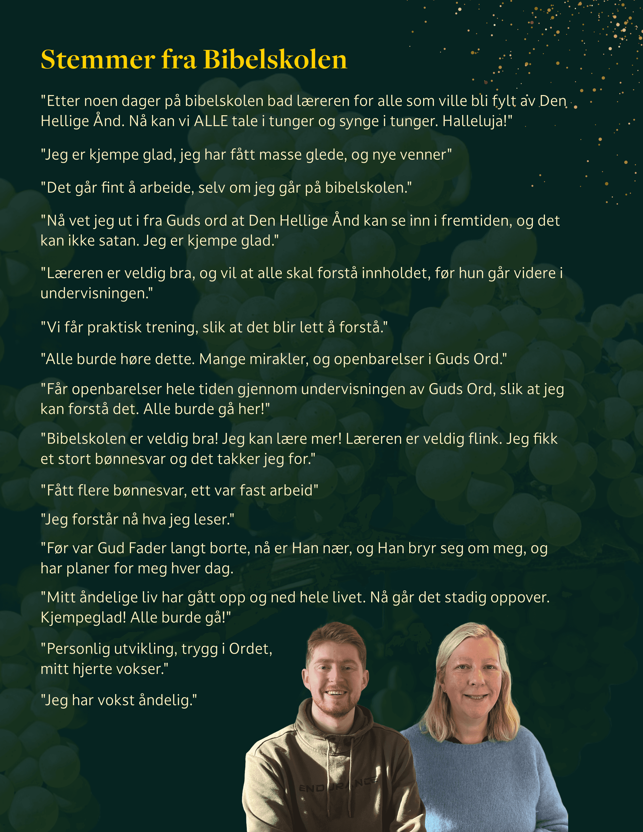 Høsten 2026 så inviterer vi deg som vil ha mer av Gud og Hans kraft til å søke på Gårdsbibelskolen vår.